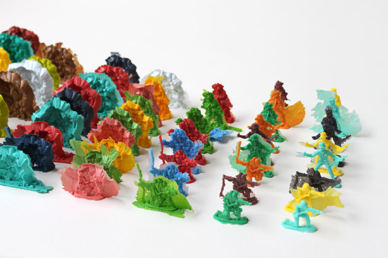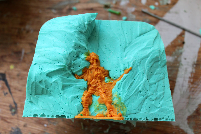 of a toy soldier. The mould is then excavated and recast in plastic.